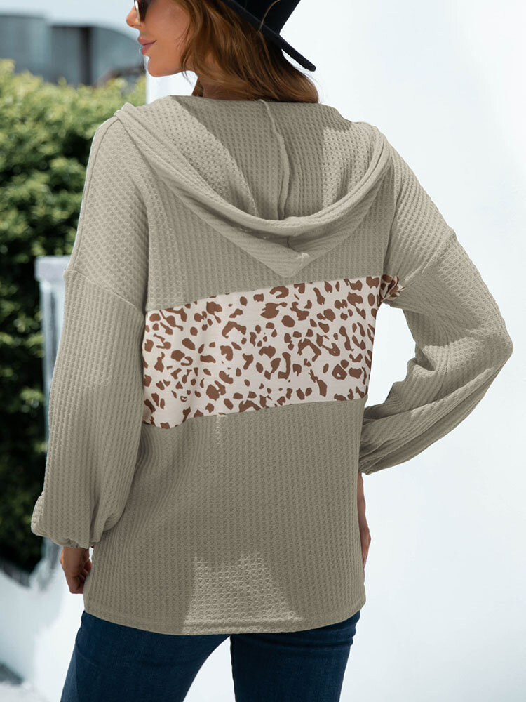 Leopard Pocket Hooded Long Sleeve Zip Draswtring Hoodie