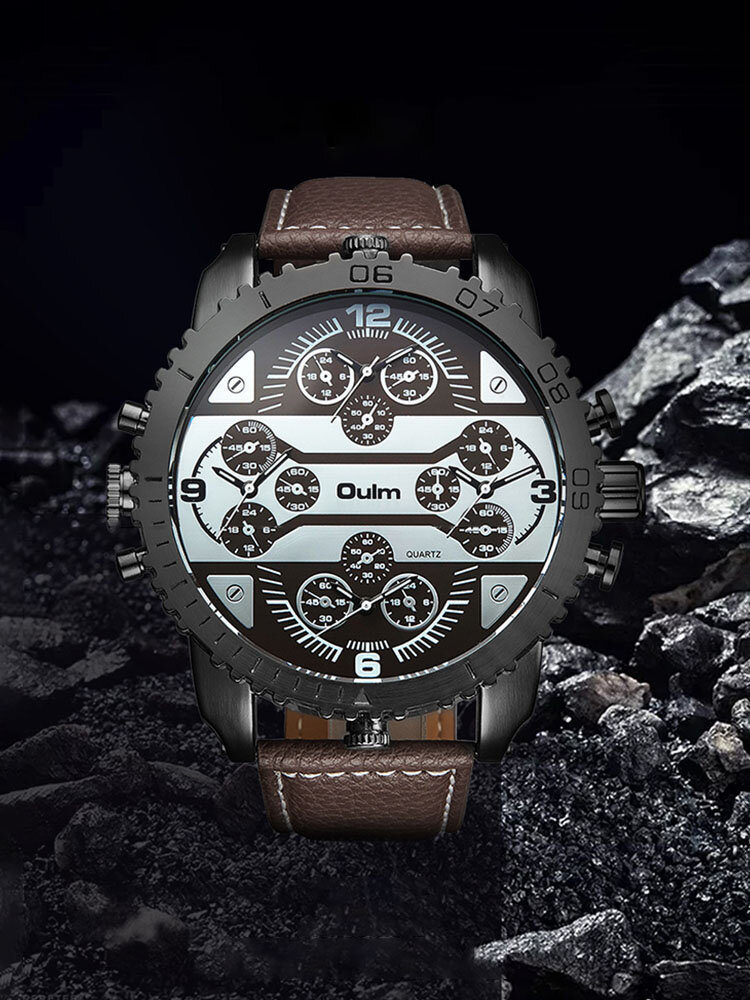 Vintage Men Watch Large Dial Multi-time Zone Watch Waterproof Quartz Watch