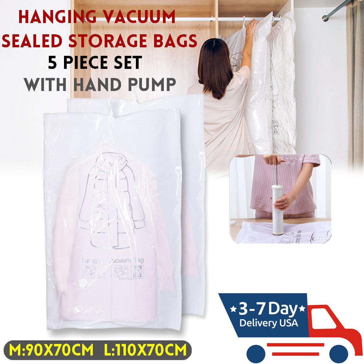 5 Piece Spacemaker Hanging Vacuum Sealed Storage Bags With Hand Pump – Clear